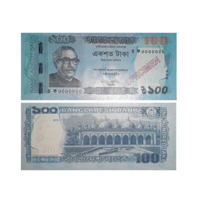 - 100 Taka (Pick #57): Front – **Sheikh Mujibur Rahman**; Back – **National Martyrs’ Memorial** with eternal flame