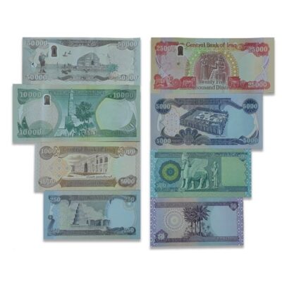 IRAQ full set of 8 banknotes all denominations 50, 250, 500, 1000, 5000, 10000, 25000 and 50000 IQD .