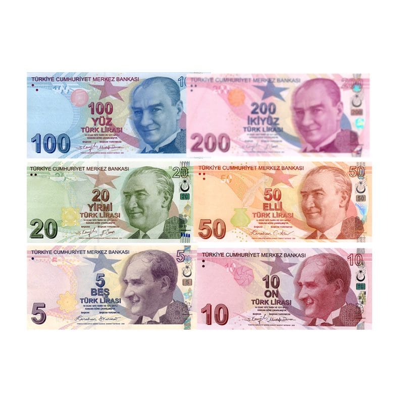 - Denominations: 5, 10, 20, 50, 100, 200 Lira (TRY)